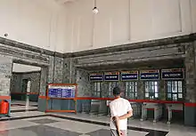 | Station hall and east departure gate | Side platform | |