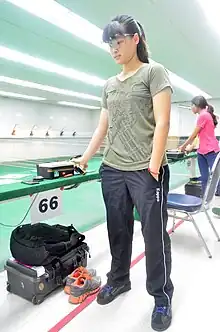 Tanyaporn Prucksakorn (Thai: ธันยพร พฤกษากร; RTGS: Thanyaphon Phrueksakon) is a Thai sport shooter who has competed at the 2008, 2012 and 2016 Summer Olympics.[2][3] At all three Olympics, she competed in the 10 m air pistol and 25 m pistol events.[3] She has been a competitive shooter since 2003, winning two World Cup silver medals, both at the Munich event (40 m air pistol in 2012 and 25 m pistol in 2015).[4]