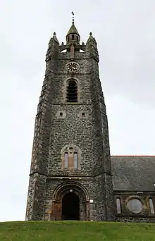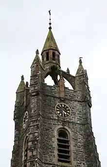 The Church of Scotland parish church occupies a fine situation on high ground and has a crown spire. Overlooking the harbour are the ruins of a castle built by Robert I of Scotland in 1326. The isthmus connecting the districts of Knapdale and Kintyre is little more than 1 mile (1.6 km) wide, and boats once used to be dragged across to the head of West Loch Tarbert, a narrow sea loch nearly 10 miles (16 km) long. A proposal to cut a canal across to shorten the sail to Islay and Jura in the late 19th century did not progress further.[7]