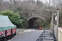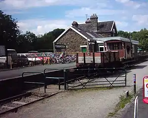 During the 1990s the track was lifted and the station became a public house. The former track bed was not to be built on, in case British Rail decided it wanted to rebuild the line. The ownership of the line was transferred to Devon County Council, who turned it into a cycle trail.[2] The owner of the public house 'The Puffing Billy' started to acquire rolling stock and a small diesel locomotive, and in 2008 the Tarka Valley Railway Group was formed.[2] In 2013 the railway gained planning approval to relay 300 yards (270 m) of track in the direction of Bideford. After the completion of the Phase 1 of the project, the railway is now in the planning stage for Phase 2 which would see the line extend to the first bridge over the River Torridge with the provision of a halt. [3]