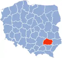 The Tarnobrzeg Voivodeship (Polish: województwo tarnobrzeskie) was a unit of administrative division and local government in Poland in years 1975-1998, superseded in parts by Subcarpathian Voivodeship, Świętokrzyskie Voivodeship and Lublin Voivodeship. Its capital city was Tarnobrzeg, although the major city in the region was Stalowa Wola.[1][2]