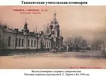 The Tashkent Teacher's Seminary (Russian: Ташкентская учительская семинария) was a seminary in Emir Timur Square, Tashkent, established in 1879 to train teachers for local schools, including native Russian schools. Its students were mostly of Russian ethnicity, including Russian-Uzbek orientalist Mikhail Stepanovich Andreev.