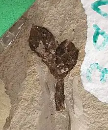 Mature seed cones of T. dubium range up to 2.5 cm (1 in) in diameter, though the cone scales are deciduous, and are shed after cone maturity, which results in full seed cone fossils being rarely preserved. The cone scales are spirally attached to the center axis with up to twelve scales completing a full cone. The scales are shield shaped in outline, with a roughly square to slightly rectangular length to width ratio. The cones were born directly on the branches, with no attaching stem. The central area of each scale is slightly concave, to hold the maturing wing seeds prior to dispersal.[1]