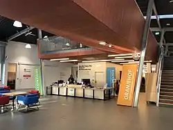The facility includes two museums, a gallery, a heritage room, library, cafe and i-SITE, plus a Council service centre. Some 150,000 locals, visitors from out of town and international tourists frequent the building every year. The community areas include a foyer that regularly hosts art classes and senior-net IT help sessions, a large reading area with armchairs and power outlets, and a children's play area with educational toys. Room hire is available for educational purposes, exercise classes, hui, and conventions and business meetings.