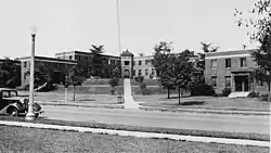 Techwood Homes was an early public housing project in the Atlanta, Georgia in the United States, opened just before the First Houses. The whites-only Techwood Homes replaced an integrated settlement of low-income people known as Tanyard Bottom or Tech Flats. It was completed on August 15, 1936,[2] but was dedicated on November 29 of the previous year by U.S. President Franklin D. Roosevelt. The new whites-only apartments included bathtubs and electric ranges in each unit, 189 of which had garages.[3] Central laundry facilities, a kindergarten and a library were also provided. Techwood Homes was demolished in advance of the 1996 Olympics and is now Centennial Place Apartments.[4]