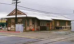 The Tehachapi Railroad Depot was a railroad station in Tehachapi, California. The Southern Pacific Railroad built the line through the area in 1876. The depot was built in 1904 after the original station building was destroyed in a fire.[2] the railroad founded the town of Tehachapi and drew the residents of nearby Tehichipa to the new settlement. The depot served a significant section of railroad, as it was located near the Tehachapi Loop and was one of the most active rural stations during World War II. The station later served as a warehouse and a railroad office.[3]