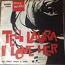 "Tell Laura I Love Her" is a teenage tragedy song written by Jeff Barry and Ben Raleigh. It was a US top ten popular music hit for singer Ray Peterson in 1960 on RCA Victor Records, reaching No. 7 on the Billboard Hot 100 chart. Later that same year, it was recorded and released by Ricky Valance in the United Kingdom, where it went to the No. 1 spot on the UK Singles Chart.[1] The song has been a hit in 14 countries, and has sold over seven million copies.[2]