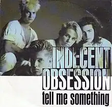 "Tell Me Something" is the second single by Australian pop rock band Indecent Obsession, released by Melodian Records and MCA Records in 1989. The single peaked at number 17 on the Australian ARIA Chart. Early in 1990, "Tell Me Something" peaked at No. 31 on the Billboard Hot 100 in the U.S.[1] and No. 91 on the Official Charts in the UK.[2]