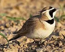 Temminck's lark (Eremophila bilopha) or Temminck's horned lark, is a bird species of the family Alaudidae. It breeds across much of north Africa, through northern Saudi Arabia to western Iraq. It is mainly resident, but some populations of this passerine bird are partially migratory, moving further south in winter. This bird's common name commemorates the Dutch naturalist Coenraad Jacob Temminck.[2] The population is declining in Israel and may also be declining elsewhere, probably as a result of habitat loss. Nevertheless, this is a common bird in many parts of its wide range and the International Union for Conservation of Nature has rated its conservation status as being of "least concern".[1]