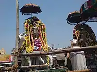 Kottaiyur Kodeeswarar ( ot koteeshwarar ) Temple (ta:கொட்டையூர் கோடீஸ்வரர் கோயில்) is a Hindu temple dedicated to Shiva, located in Kottaiyur, a village in the outskirts of Kumbakonam, in Thanjavur district in Tamil Nadu, India. Shiva is worshipped as Koteeswarar and his consort Parvathi as Pandhadu Nayaki. Koteeswarar is revered in the 7th century Tamil Shaiva canonical work, the Tevaram, written by Tamil saint poets known as the Nayanmars and classified as Paadal Petra Sthalam, the 275 temples revered in the canon.