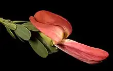 Templetonia retusa, known as cockies tongues,[2] cocky's tongues,[3] or coral bush[4] is a shrub in the family Fabaceae (Leguminosae) that grows in southern and south-western Australia. It grows up to 2 metres (6 ft 7 in) high, with leaves 15–40 millimetres (0.6–1.6 in) long and 7–25 mm (0.3–1.0 in) wide.[3] Its flowers are normally a rich red colour, and are 25–40 mm (1.0–1.6 in) long. The seed pods are 40–50 mm (1.6–2.0 in) long and around 10 mm (0.4 in) wide.[3] It is found in coastal woodland and heaths over limestone from Shark Bay, Western Australia, to near Kangaroo Island, as well as inland in the Flinders Ranges of South Australia.[3]