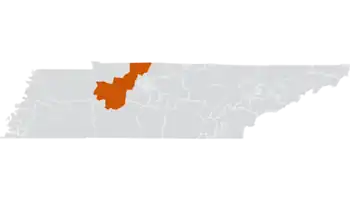 The district overlaps with Tennessee's 5th, 6th, and 7th congressional districts, and with the 66th, 69th, 74th, and 78th districts of the Tennessee House of Representatives.[4] It borders the state of Kentucky.[1]