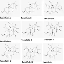 Tenuifolins are bio-active terpenoids. Tenuifolins inhibit beta-amyloid synthesis in vitro. Tenuifolins have nootropic activity in vivo via acetylcholinesterase inhibition and increased norepinephrine and dopamine production.