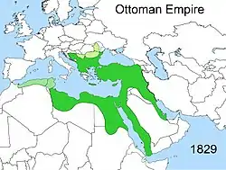 The Treaty of Küçük Kaynarca (also spelled Kuchuk Kainarji) was signed on July 21, 1774, in Küçük Kaynarca, Dobruja (today Kaynardzha, Silistra Province, Bulgaria) between the Russian Empire (represented by Field-Marshal Rumyantsev) and the Ottoman Empire after the Ottoman Empire was defeated in the Russo-Turkish War of 1768–1774.[10]