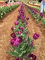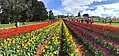 TheTesselaar Tulip Festival is held in Silvan, Victoria every spring, displaying more than 120 varieties of tulips are shown on a 55-acre farm.[1][2] This tulip farm was initiated by a couple of Dutch immigrants, Cees and Johanna Tesselaar. They arrived in Melbourne in 1939 and started to grow tulips, gladioli and daffodils on their land. After purchasing more land in Silvan, they grew more tulip bulbs, which attracted people to stop by on their property and admire their fields. In 1954, the Tesselaars open the farm to the public, with a coin donation for the Australian Red Cross. In 2017, around 900,000 tulip bulbs were planted using modern machinery, and 80,000 bulbs are still planted traditionally by hand.[3][4] The tulip festival has evolved to include music, food and wine festival to attract more visitors during the spring season (September - October).[5]