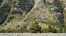 The role of wildfire is an important one for plant and animal species diversity.[123] Many tree species have evolved to mainly germinate after a wildfire. Regions of the park that have experienced wildfire in historical times have greater species diversity after reestablishment than those regions that have not been influenced by fire.[123][124] Though the Yellowstone fires of 1988 had minimal impact on Grand Teton National Park, studies conducted before and reaffirmed after that event concluded that the suppression of natural wildfires during the middle part of the 20th century decreased plant species diversity and natural regeneration of plant communities. One study conducted 15 years before the 1988 Yellowstone National Park fires concluded that human suppression of wildfire had adversely impacted Aspen tree groves and other forest types.[125] The majority of conifer species in Grand Teton National Park are heavily dependent on wildfire and this is particularly true of the Lodgepole Pine.[126] Though extremely hot canopy or crown fires tend to kill Lodgepole Pine seeds, lower severity surface fires usually result in a higher post-wildfire regeneration of this species.[127] In accordance with a better understanding of the role wildfire plays in the environment, the National Park Service and other land management agencies have developed Fire Management Plans which provide a strategy for wildfire management and are expected to best enhance the natural ecosystem.[128]