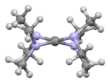Crystallographic analysis show that TDAE is a highly distorted alkene, the dihedral angle for the two N2C termini is 28″. The C=C distance is alkene-like, 135 pm. The nearly isostructural tetraisopropylethylene also has a C=C distance of 135 pm, but its C6 core is planar. In contrast, [TDAE]2+ is an alkane with multi-C-N bonds.