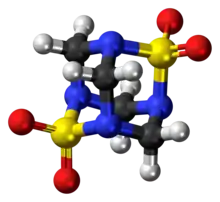 Tetramethylenedisulfotetramine (TETS) is an organic compound used as a rodenticide (rat poison).[2] It is an odorless, tasteless white powder that is slightly soluble in water, DMSO and acetone, and insoluble in methanol and ethanol. It is a sulfamide derivative. It can be synthesized by reacting sulfamide with formaldehyde solution in acidified water.[3] When crystallized from acetone, it forms cubic crystals with a melting point of 255–260 °C.