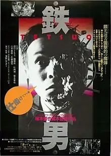 Tetsuo: The Iron Man (鉄男, Tetsuo, 'iron man') is a 1989 Japanese science fiction horror film directed, written, produced, and edited by Shinya Tsukamoto. The film centers around an unnamed Japanese salaryman who wakes up to find pieces of metal sprouting from various parts of his body and becomes haunted by visions of metal-oriented sexual fantasies. As the man steadily becomes a hybrid of man and machine, he develops a connection with a victim from a hit-and-run accident, who is undergoing a similar transformation.