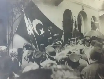 Others also took part in the speech. Selahaddin Bey stressed that the partition of Poland was a "sacrilegious act", and that the Ottoman Empire did not recognise it.[lower-alpha 1] Selahaddin Bey also confirmed the CUP's utmost support for Polish independence to attendees. Gasztowtt responded by advocating for the revitalisation of Ottoman-Polish relations. Bulletin Polonais branded the event as a "real lesson of tolerance" with many Muslims and Imams attending the mass and sacrificing lambs in remembrance of Poles who died. The Tanin newspaper also celebrated not only Polish soldiers who had died in the Crimean War but those who had served the Sublime Porte for years, in order to underline the historical basis of Ottoman-Polish cooperation.[12]