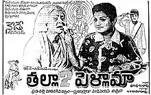 Thalla? Pellama? (transl. Mother or Wife?) is a 1970 Indian Telugu-language drama film directed by N. T. Rama Rao. It stars N. T. Rama Rao, Chandrakala and Master Harikrishna, with music composed by T. V. Raju. It is produced by N. Trivikrama Rao under the NAT and Ramakrishna Cine Studios banners. The film was remade in Hindi as Bidaai (1974) and in Tamil as Piriya Vidai (1975).[1][2]
