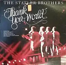 Thank You World is the tenth studio album by American country music group The Statler Brothers. It was released in 1974 via Mercury Records. The album peaked at number 36 on the Billboard Top Country Albums chart.