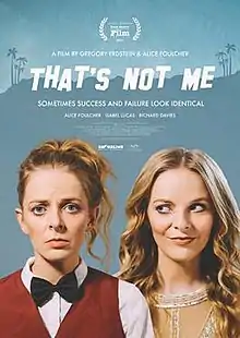 That's Not Me is an Australian independent comedy film directed by Gregory Erdstein. It was filmed between 2015 and 2016 in Melbourne, Australia, and Los Angeles, US.[1][2] The screenplay was written by Gregory Erdstein and lead actress Alice Foulcher.[3][4] That's Not Me had its World Premiere in February 2017 at the Santa Barbara International Film Festival[5] and its Australian Premiere in June 2017 at the Sydney Film Festival.[6] It was released theatrically at selected cinemas across Australia in September 2017.[7] In 2020 That's Not Me was nominated for the AACTA Byron Kennedy Award, as one of the top 12 indie feature films of the past decade.[8]