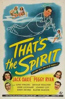 That's the Spirit is a 1945 American comedy film directed by Charles Lamont and written by Michael Fessier and Ernest Pagano. The film stars Peggy Ryan, Jack Oakie, June Vincent, Gene Lockhart, Johnny Coy, Andy Devine, Arthur Treacher, Irene Ryan and Buster Keaton. The film was released on June 1, 1945, by Universal Pictures.[1][2][3]