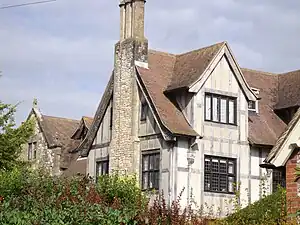 It is an irregular five bay, two and three storey house built in 1871-2 by the Rev. George Faithfull in the Victorian Gothic style, reusing material from the 1621 rectory which was demolished at this time.[1] In the 1880s it was the residence of Colonel Walter George Stirling, a baronet who had a pedigree herd of Jersey cattle.[2][3] Successive tenants altered the house; in 1911 (semi-timbered work) and 1930 (brick range) when Colonel H. V. Ravenscroft added a billiard room and ballroom designed by John Leopold Denman.[1]