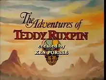 The Adventures of Teddy Ruxpin is a children's animated television series based on Teddy Ruxpin, an animatronic teddy bear created by Ken Forsse and distributed by toy manufacturer Worlds of Wonder.[1][2] Produced in 1986–7 for television syndication by DIC Enterprises with Atkinson Film-Arts, the series employed many of the same voice actors used in the book-and-tape series that was made for the eponymous animatronic toy. While some of the stories used in the TV series were adapted from the books, many were original and greatly expanded upon the world established there.[3] The series differed from traditional children's animation in that most of its 65 episodes were serialized rather than in traditional episodic form.