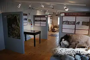 The museum consists of two parts. The first part deals with the biology and natural history of the Arctic fox including distribution, genetics, diet, details about their behaviour and the difference between 'white' and 'blue' morph Arctic foxes - the lesser known blue morph being especially significant to the region. The second deals with the social history of Iceland in relation to Arctic foxes, a complex history that reaches back over 1000 years. This part of the exhibition explores Iceland's fox-hunting tradition which continues to affect Iceland's relationship with the fox. Both the social and natural history parts of the museum give context to the scientific research conducted by the centre (and associates), of which there are also exhibits on display. The information is available in Icelandic, English, and German and informative tours are also often available.