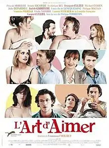 The Art of Love (French: L'art d'aimer) is a 2011 French comedy film directed and written by Emmanuel Mouret. The film stars Mouret himself, Pascale Arbillot, Ariane Ascaride, Frédérique Bel, François Cluzet, Julie Depardieu, Judith Godrèche, Stanislas Merhar, Elodie Navarre, Laurent Stocker and Gaspard Ulliel, and is narrated by Philippe Torreton.