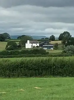 The farmhouse is a three-unit, two-storeyed building on an L-plan.[1]Newman describes it as "a farmhouse of exceptional pretension".[1] The construction is principally of sandstone rubble, with some of the late-17th century extension being undertaken in brick. Fox and Raglan note that this is an exceptionally early use of brick in Monmouthshire for a gentry, as opposed to an aristocratic, house.[4] The hipped roof is of slate.[5] Very large chimney stacks at either end create "an architectural west front of 'dollshouse' symmetry".[5] C.J.O. Evans suggests that the site was originally moated but no trace of such a feature now remains.[6]