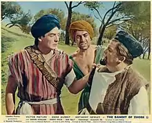 The Bandit of Zhobe is a 1959 British CinemaScope adventure film directed by John Gilling and starring Victor Mature, Anne Aubrey and Anthony Newley.[2] In British India a bandit goes on a rampage in the mistaken belief that the British have killed his family, which later proves to not be the case. It was produced by Albert Broccoli for Warwick Films and features extensive use of footage from Gilling's previous Zarak.