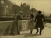 An old man is ringing loudly the bells of a church. He looks at his watch and makes a joyful gesture. His daughter is waiting for him. He finds her ready to go out: an errand in a hurry, she explains. An elegant young man is waiting for her in his car. They go the Bois de Boulogne. In the church tower, the old man is waiting, feeling an unknown dread growing in his heart. He looks at the silhouette of Paris fading into the night. The old man, alone in front of the enormous gargoyles, like impassive monsters, falls back, overwhelmed, his head in his hands. In another part of the city, in a gambling den, her lover plays and loses. In a garret, his mistress is waiting for him. The man returns, haggard-eyed, forces his wife, despite her frightened pleas, to rob her father's money. When the old man returns, he finds the room in disarray, the safe empty. An object on the floor that belonged to his daughter reveals who the culprit was. He curses his daughter. In the garret, the lover chases away his lover and their baby. She flees into the night and her frantic walk leads her to the Seine. A sailor holds her back just as she is about to commit suicide. Instinct then takes her back to the place of her childhood. She leaves her baby on the steps of the church, where he is taken in by the old bell ringer. Ten years later. The grandfather and the little girl are walking on the quay of the Seine. A beggar woman holds out her hand. The little girl gives her a coin, not knowing she is her mother but she recognizes her father. She follows then in a public park where she hugs her daughter and tell her who she is. Her father chases her away and leaved hurriedly with the child. She goes to her father lodging and he wants to chase her away again but the little girl's intercession disarms the old man and suddenly makes all his resentment crumble at the shock of a feeling of paternal pity.[2]