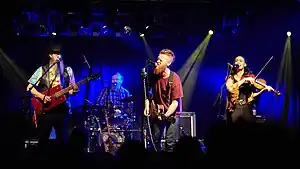 The Ben Miller Band is an American band that was formed in 2005 in Joplin, Missouri.[1] The band's lineup currently consists of lead vocalist and guitarist Ben Miller; bassist (playing a homemade one-string washtub bass), drummer, and back-up vocalist Scott Leeper; lead/back-up vocalist, violinist/cellist, guitarist, and electric-cactus player Rachel Ammons; and guitarist/bassist/percussionist Bob Lewis.[1][2] The Ben Miller Band combines elements of folk, blues, bluegrass and country into their music. Originally, The Ben Miller Band's sound had been self-described by the band as "Ozark Stomp" but in reference to their label, is now referred to as "Mudstomp".[1]