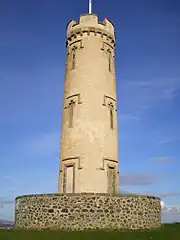 The house is set in 200 acres (0.81 km2) of parkland, and approached by two drives: the current west drive, and main east drive that has been disused since 1913. The category "B" listed folly Binns Tower is situated at the highest point of the park, Binns Hill. It was designed by Alexander Allan in 1826, allegedly as the result of a wager placed with the then owner, Sir James Dalyell.[4] On the west side of Binns Hill is a woodland garden with walks through it to the tower. Beneath the escarpment to the south-west of the Tower is General Tam's cave, supposedly used by him for meditation.