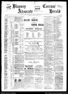 - 1 2 "The Blayney Advocate and Carcoar Herald". State Library of NSW Catalogue. State Library of NSW. 26 May 2016. Retrieved 26 May 2016.