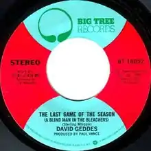 "The Blind Man in the Bleachers" is a single written by Sterling Whipple[2] and famously performed by American singer David Geddes. His version, titled "The Last Game of the Season (A Blind Man in the Bleachers)", reached number 18 on the Billboard Hot 100 in 1975.[3]