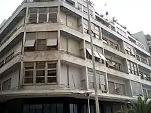 The Blue Condominium (Greek: Μπλε πολυκατοικία, therefore also called Blue Polykatoikia), is an apartment building in the Exarcheia neighborhood of Athens, Greece. It lies on the corner of Arachovis and Themistokleous Streets, adjacent to Exarcheia square and was built in 1932–1933 for Kyriakos Panagiotakos, the architect who designed the building. Being a very important example of modern architecture in Athens, it was designed by architect Kyriakoulis Panagiotakos. It took its nickname from the initial dark blue colour of its façade, which was selected by painter Spyros Papaloukas.[1]