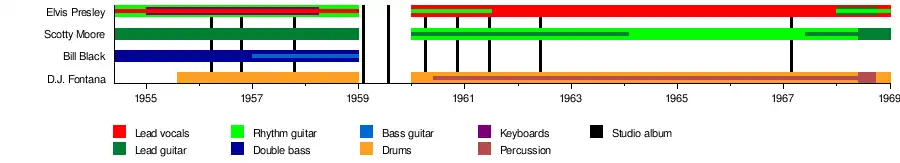 | Past members | Elvis Presley Scotty Moore Bill Black D. J. Fontana |