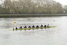 The Boat Race is an annual rowing eight competition between the University of Oxford and the University of Cambridge. First held in 1829, the competition is a 4.2-mile (6.8 km) race along The Championship Course on the River Thames in southwest London.[1] The rivalry is a major point of honour between the two universities and followed throughout the United Kingdom and worldwide.[2] Oxford went into the race as reigning champions, having beaten Cambridge by 1+1⁄2 lengths in the previous year's race. However Cambridge held the overall lead, with 81 victories to Oxford's 77 (excluding the "dead heat" of 1877).[3]