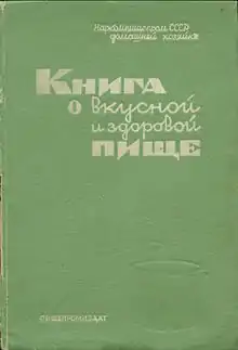 The Book of Tasty and Healthy Food (Книга о вкусной и здоровой пище, Kniga o vkusnoi i zdorovoi pishche) is a Russian cookbook written by scientists from the Institute of Nutrition of the Academy of Medical Sciences of the USSR. The cookbook was first published in 1939,[1] and a further edition was published in 1952.[2][3] An English translation (by Boris Ushumirskiy) appeared in 2012.[4]