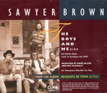 "The Boys and Me" is a song written by Mark Miller and Mac McAnally, and recorded by American country music group Sawyer Brown. It was released in October 1993 as the second single from the album Outskirts of Town. The song reached number 4 on the Billboard Hot Country Singles & Tracks chart.[1]
