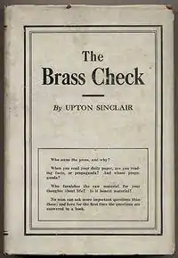 The Brass Check is a muckraking exposé of American journalism by Upton Sinclair published in 1919. It focuses mainly on newspapers and the Associated Press wire service, along with a few magazines. Other critiques of the press had appeared, but Sinclair reached a wider audience with his personal fame and lively, provocative writing style.[1] Among those critiqued was William Randolph Hearst, who made routine use of yellow journalism in his widespread newspaper and magazine business.