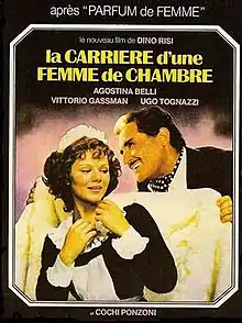 Telefoni bianchi (transl.White Telephones, internationally released as The Career of a Chambermaid) is a 1976 Italian comedy film directed by Dino Risi. For this film Agostina Belli was awarded with a Special David di Donatello for her performance.[1] The title refers to the White Telephone comedies of the 1930s and 1940s. The film is a comic portrayal of the Italian film industry during the Fascist era in which an ambitious young woman briefly rises to become a film star.