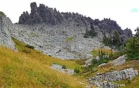 The Castle[2] is the descriptive name for a summit in the Tatoosh Range which is a sub-range of the Cascade Range. It is located in Lewis County of Washington state. Situated in Mount Rainier National Park, The Castle is 0.2 mile immediately east of Pinnacle Peak. Precipitation runoff from The Castle drains into tributaries of the Cowlitz River.[1]