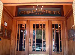 The building is the featured setting of a 2002 mystery novel The Chandler Apartments by Owen Hill, who wrote the book while living there. The building is currently unoccupied as a result of a fire on 22 November 2015.