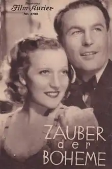 The Charm of La Bohème (German: Zauber der Boheme) is a 1937 Austrian musical film directed by Géza von Bolváry and starring Jan Kiepura, Mártha Eggerth, and Paul Kemp.[1] It follows the plot of Giacomo Puccini's 1896 opera La bohème. The film's sets were designed by Hans Ledersteger. The Berlin premiere took place at the Ufa-Palast am Zoo.
