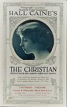 The Christian (1914) is a silent film drama, directed by Frederick A. Thomson, and costarring Earle Williams and Edith Storey. The film is based on the novel The Christian by Hall Caine, published in 1897, the first British novel to reach the record of one million copies sold.[1] The novel was adapted for the stage, opening on Broadway at the Knickerbocker Theatre 10 October 1898.[2] This was the second film of the story; the first, The Christian (1911) was made in Australia.